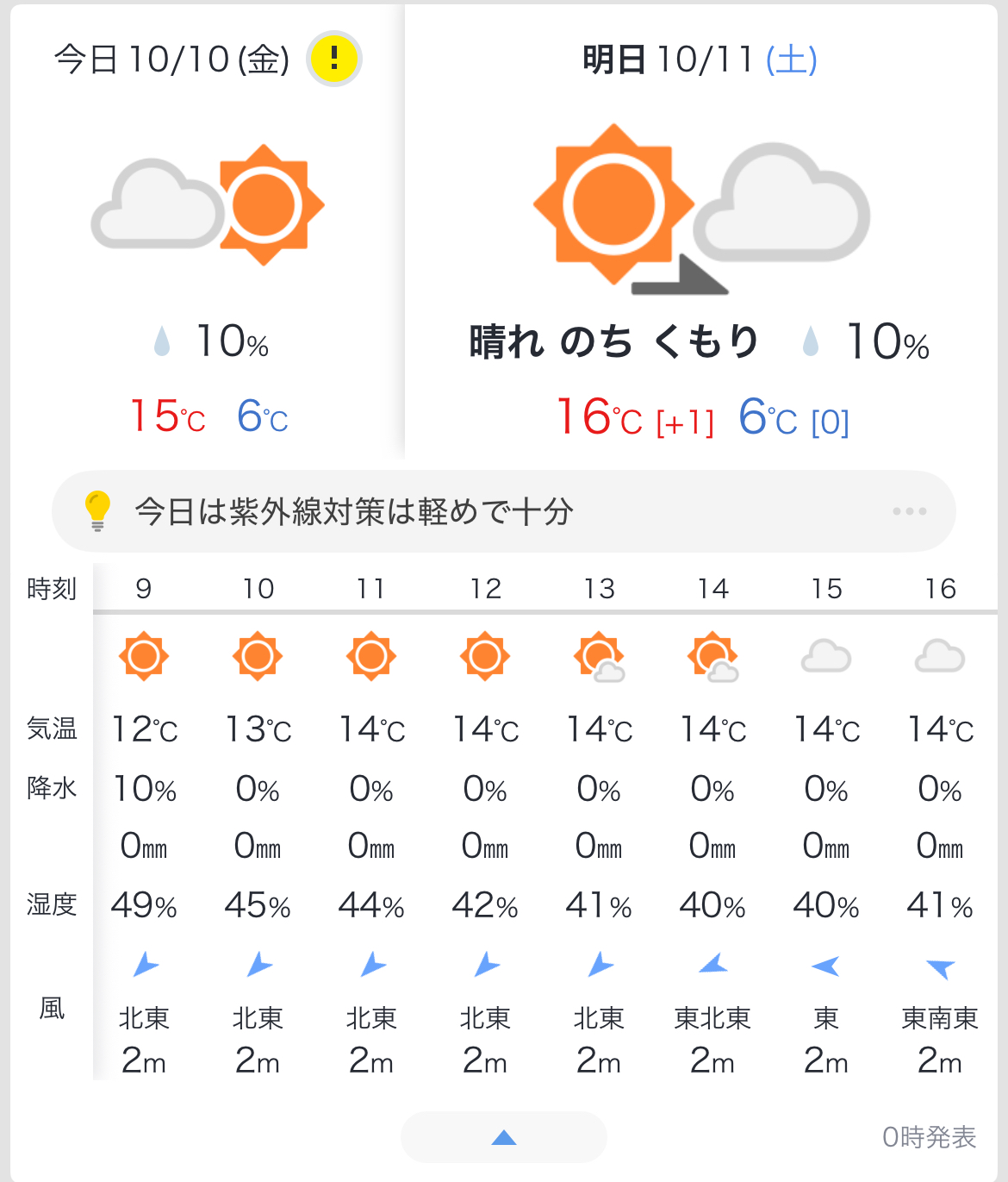 札幌地方の予想最高気温は15度前後。風は弱いとのことですが、防寒対策などのご配慮よろしくお願いいたします。