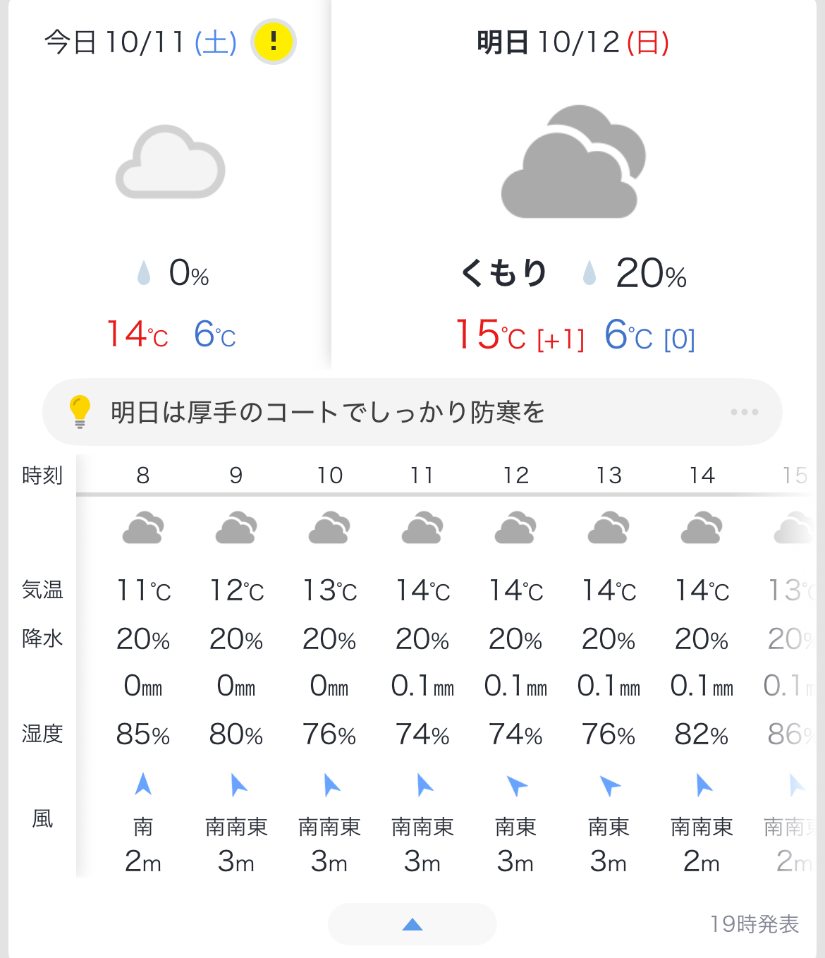 札幌地方の予想最高気温は16度前後。風は本日より強く感じますので、更なる防寒対策などのご配慮をよろしくお願いいたします。